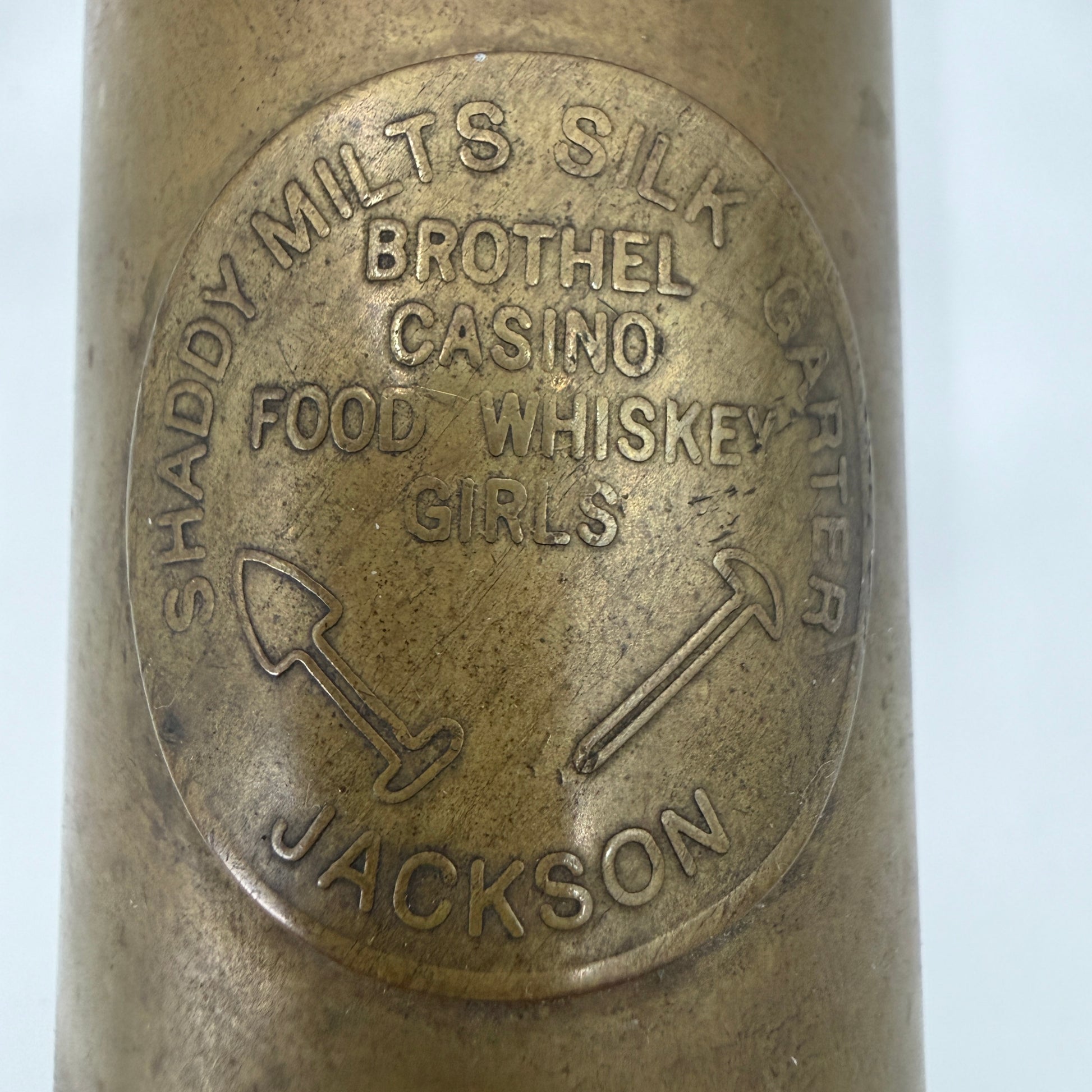reads "Shaddy Milts Silk Garter Jackson Brothel Casino Food Whiskey Girls"