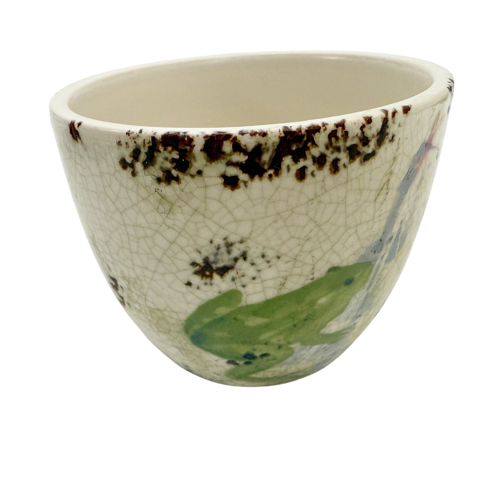 Creative Co-op House in the Country ceramic trinket cup green frog dragonflies