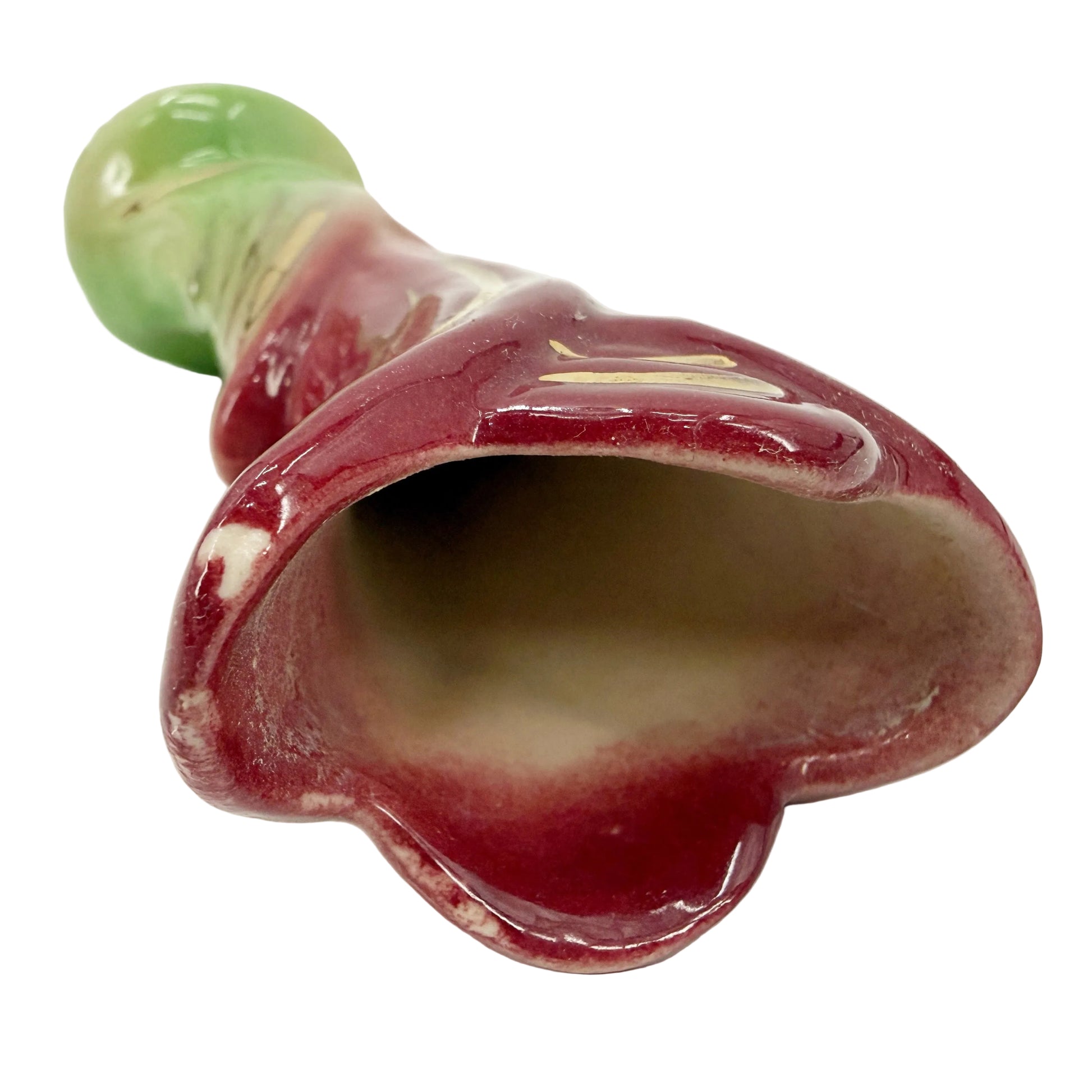 Shawnee burgundy green & gold Bud floral Vase | vintage pottery