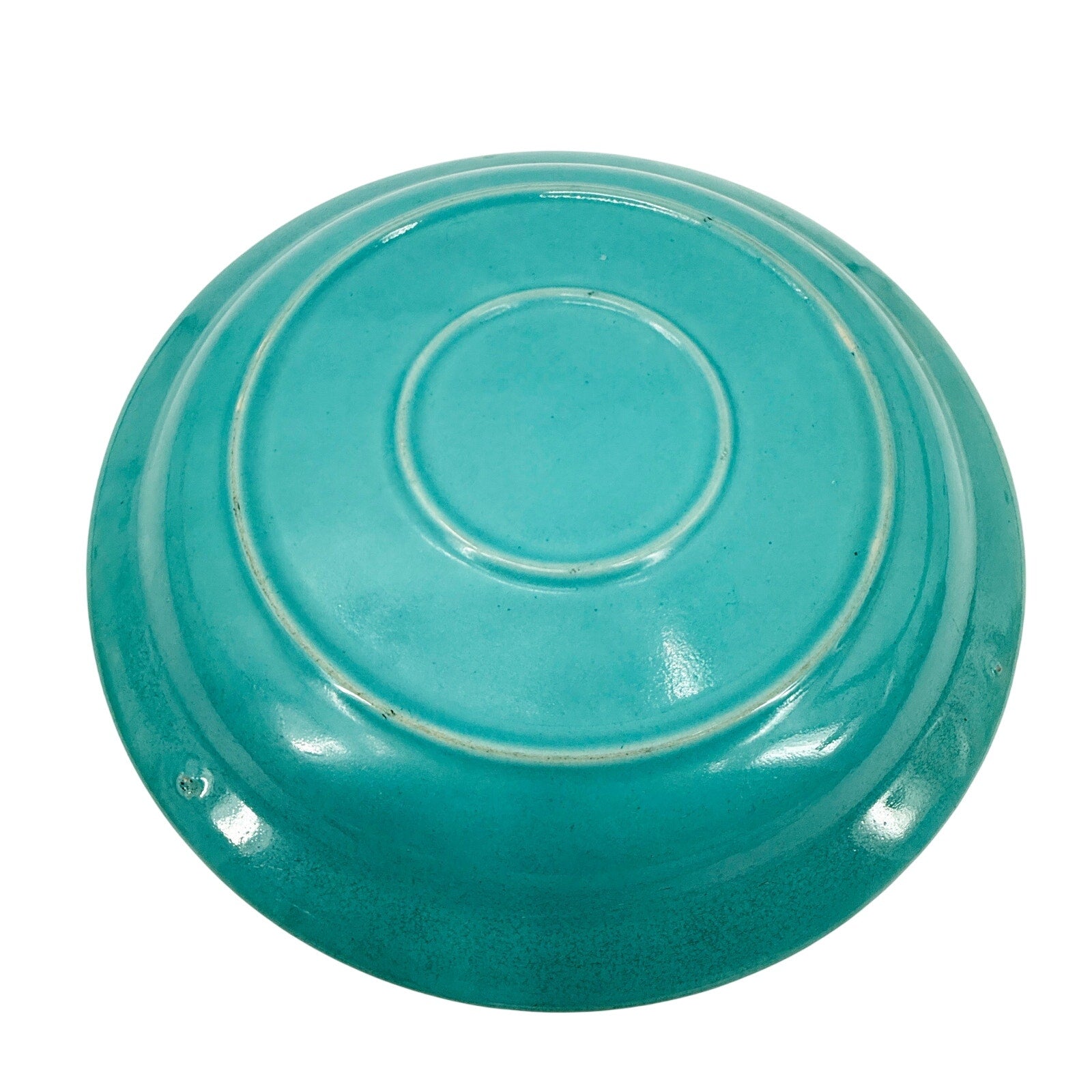 vintage heavy & large 12.5" turquoise blue Round Platter plate serveware