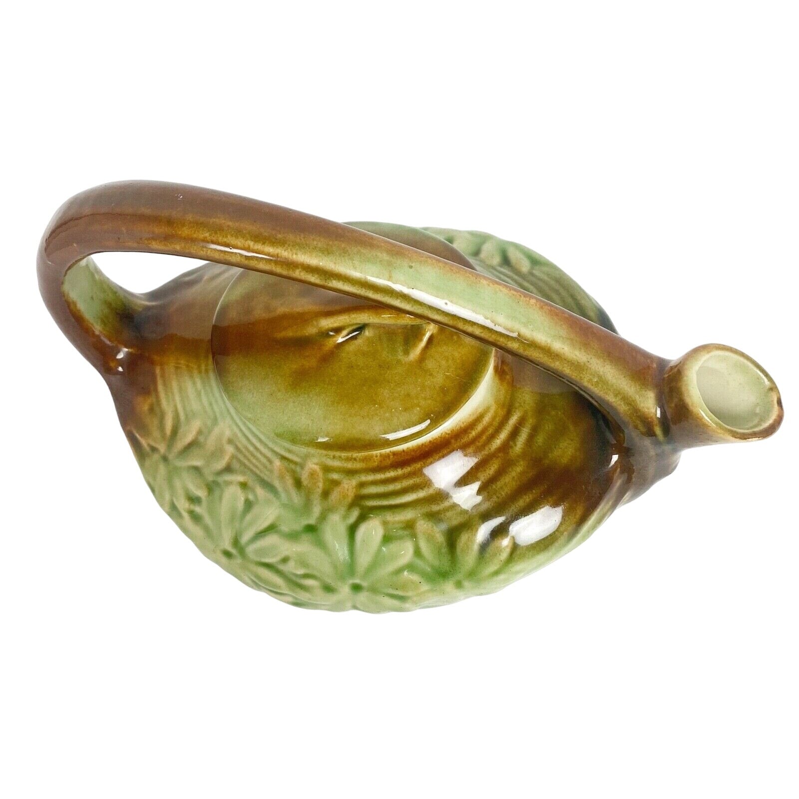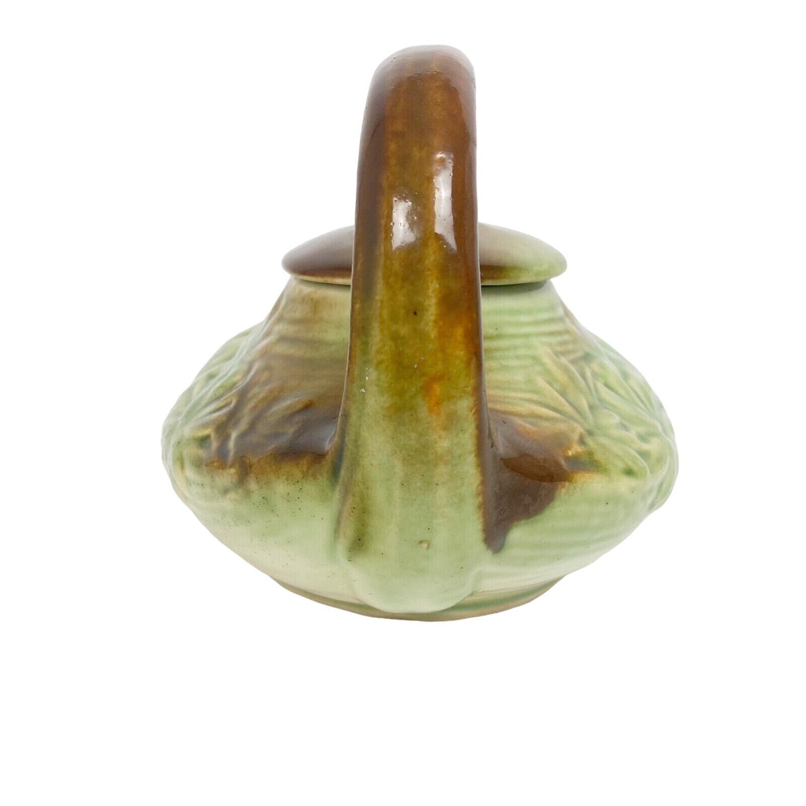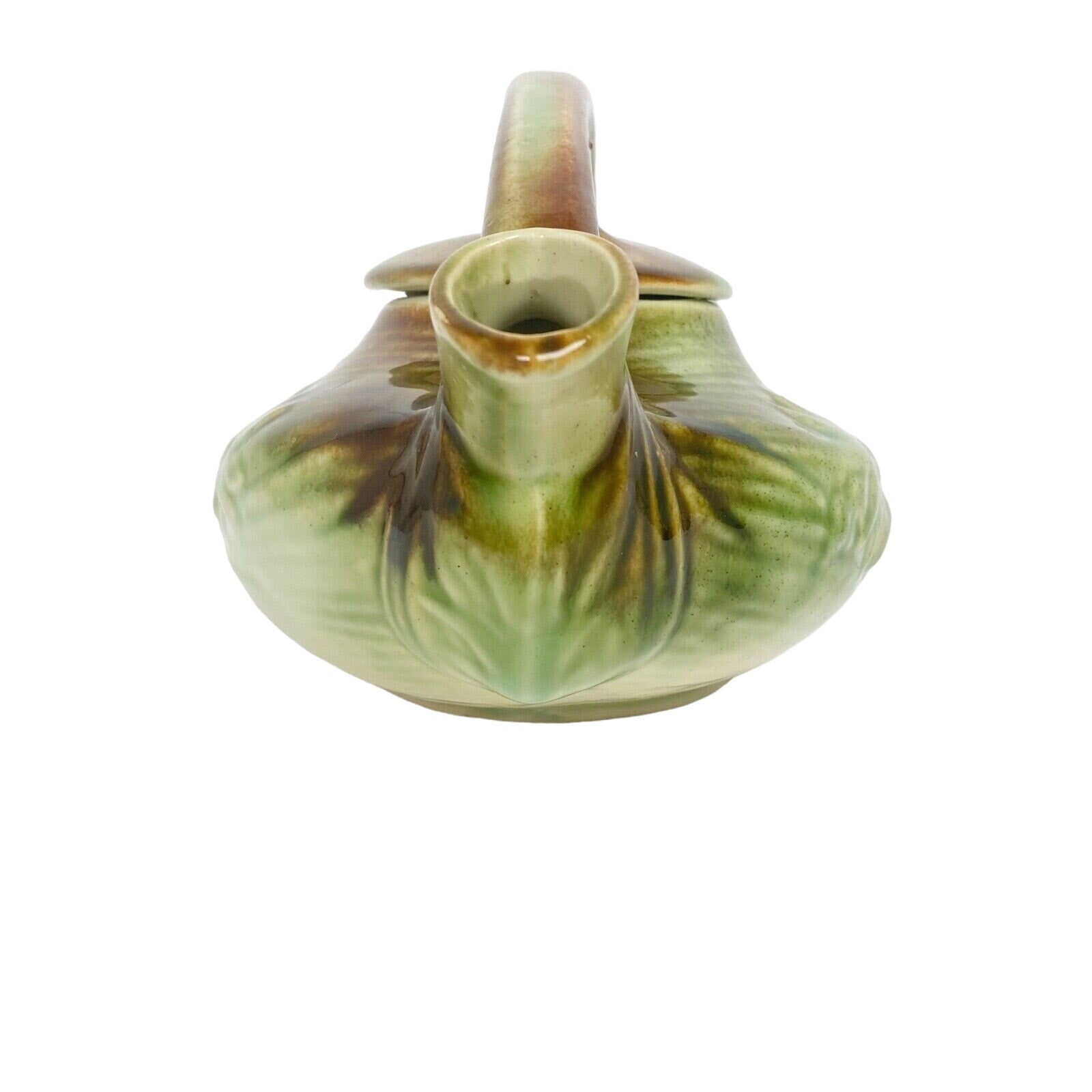 vintage McCoy green brown Daisy Green creamer sugar bowl teapot lid POTTERY set