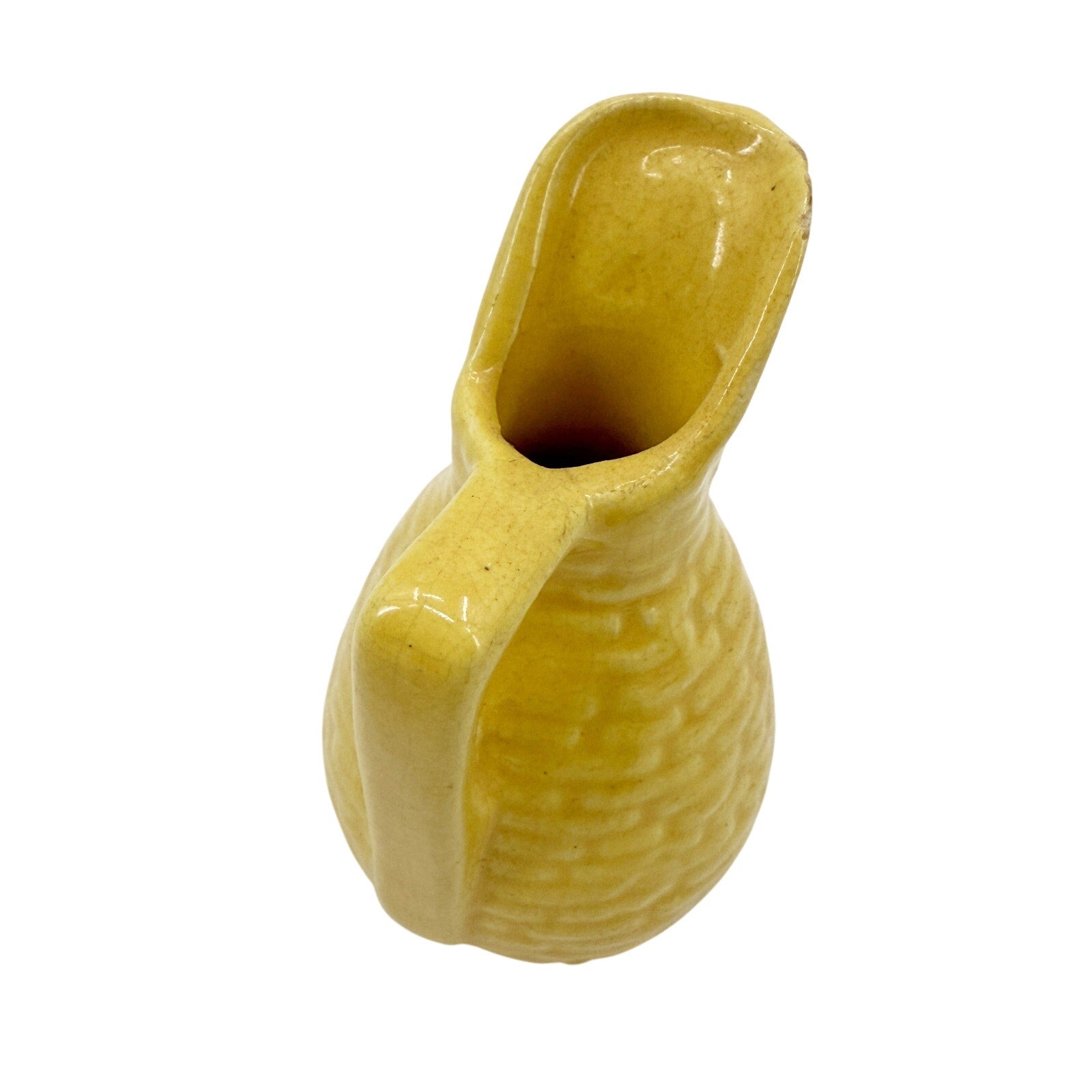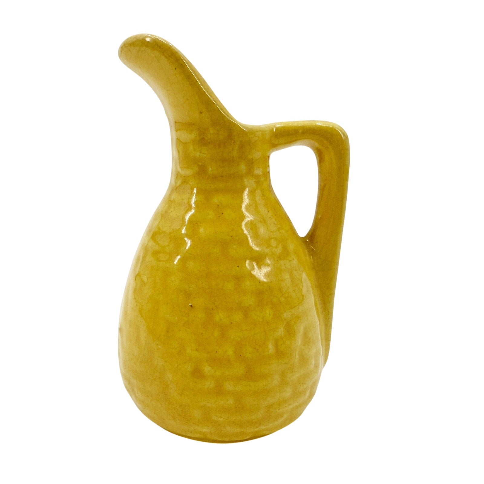 vintage miniature yellow Pitcher 3.5" tall handled jug mini art pottery