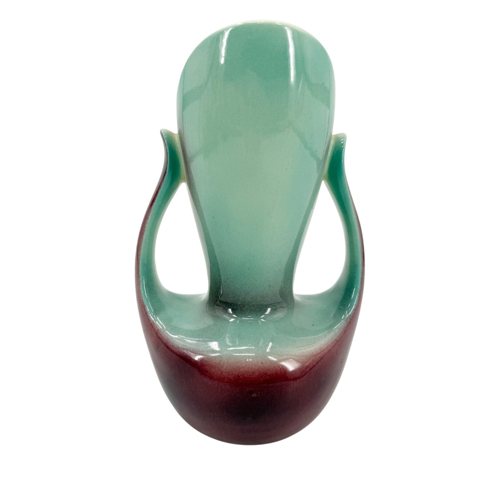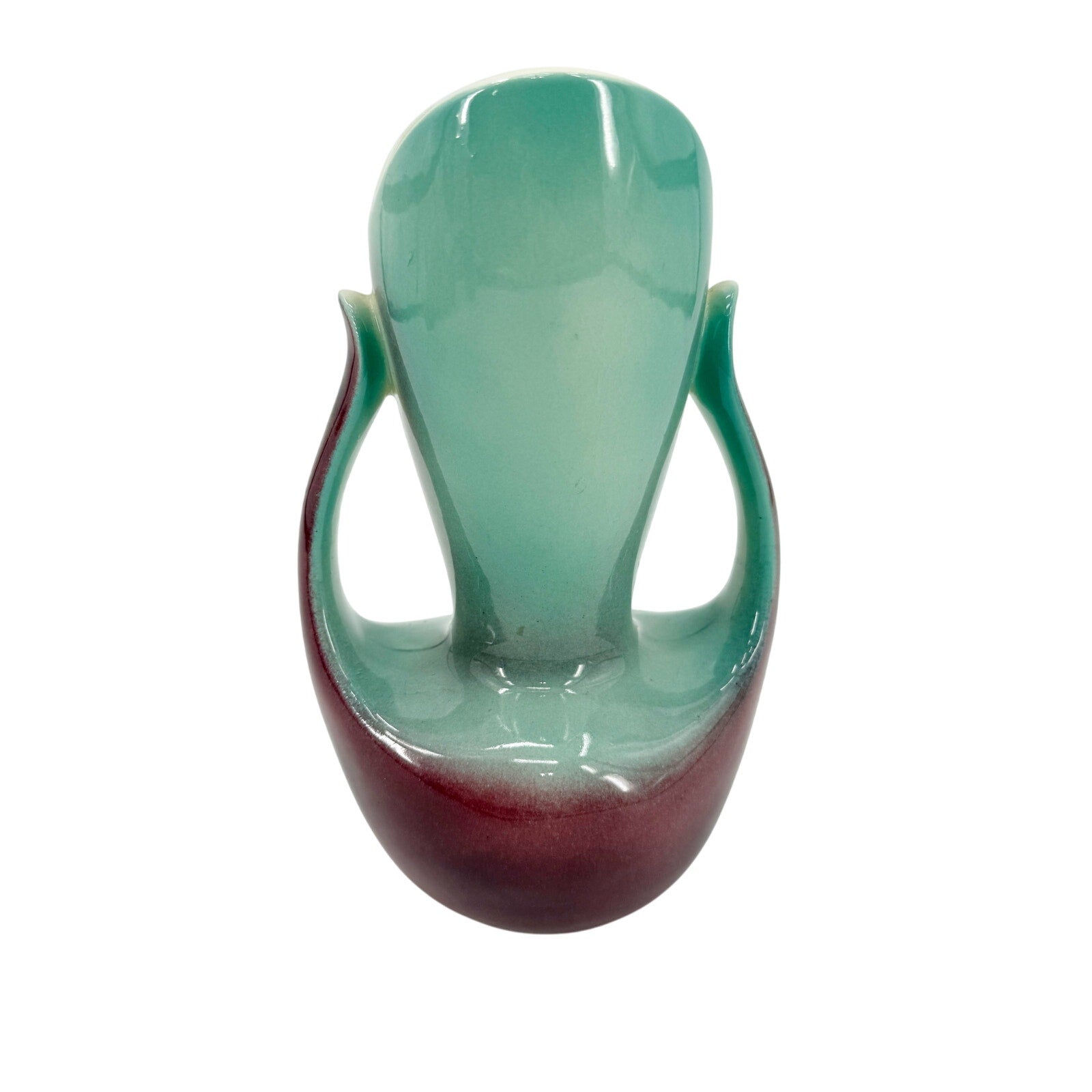 vintage pale turquoise & burgundy Flower Vase mid century modern ceramic art
